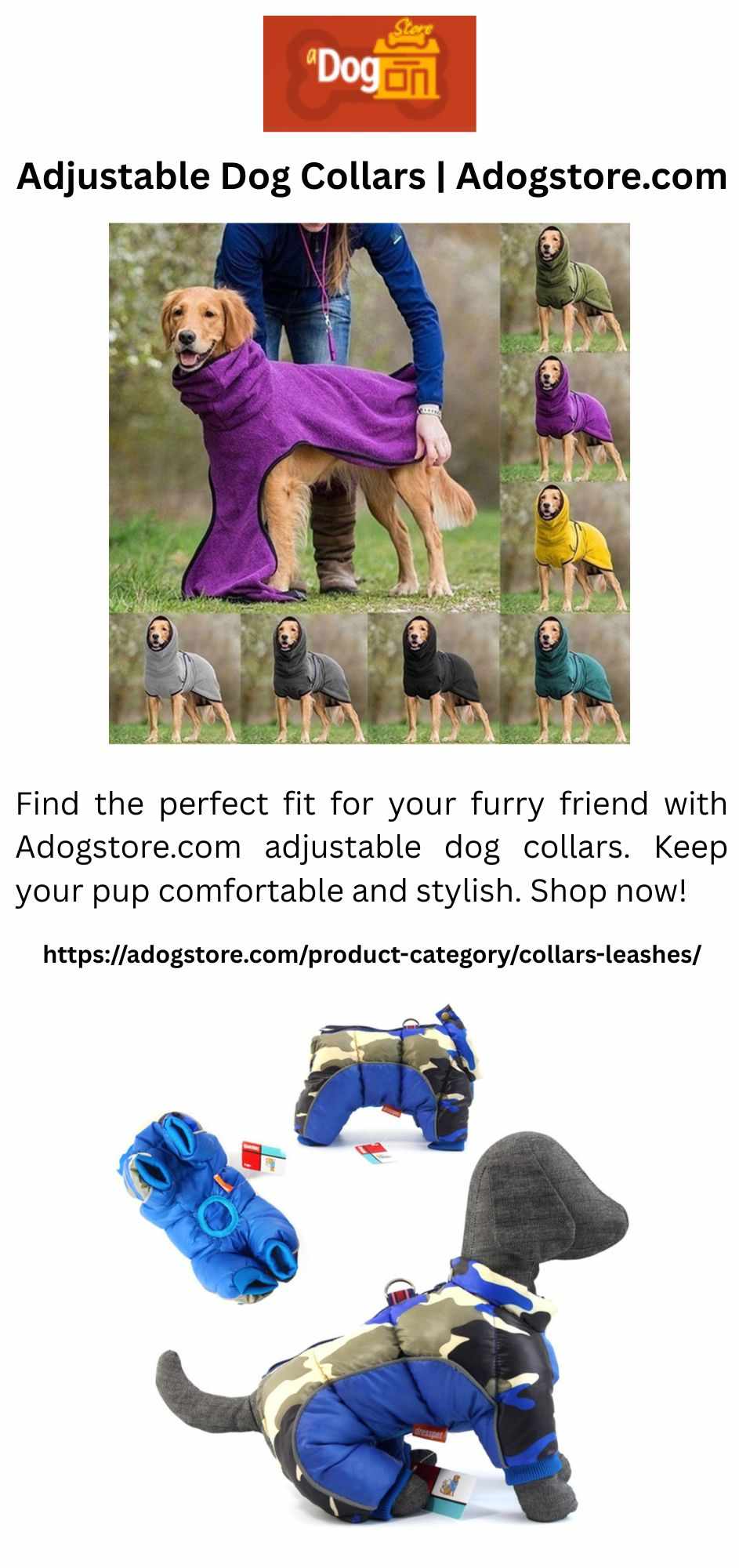 Find the perfect fit for your furry friend with Adogstore.com adjustable dog collars. Keep your pup comfortable and stylish. Shop now!